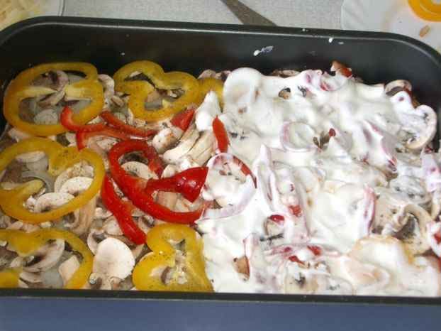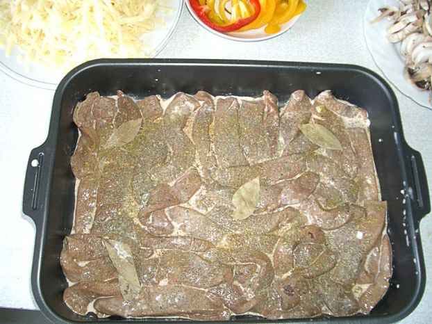Вторые блюда > Блюда из мяса > Запеченная печень с грибами