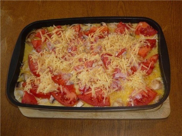 Вторые блюда > Блюда из мяса > Запеченная свинина с грибами и помидорами
