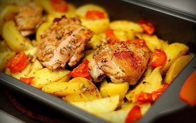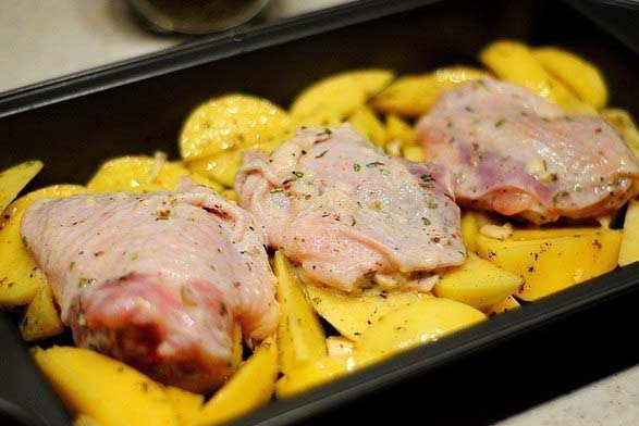 Вторые блюда > Блюда из птицы > Запечённая курица с картофелем и кефиром