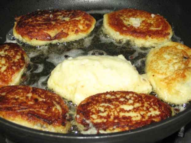 Берем картофельное тесто размером с небольшой шарик и пальцем делаем углубление внутри, как корзинка, чайной ложечкой засыпать начинку. Краями закрываем зразы, если не хватает, добавить еще немного теста. Выкладываем зразы швом вниз и обжариваем на растительном масле