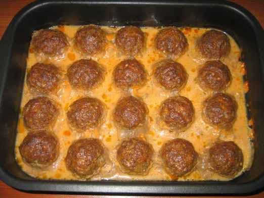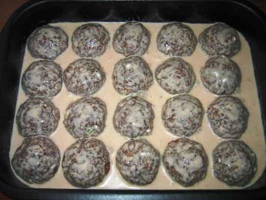 Выкладываем котлеты на противень. Сметану и томатную пасту смешиваем, делая соус, лучше добавить немного воды, чтобы соус залил все котлеты