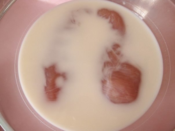 По истечение двух часов достаем грудку и даем стечь остаткам молока. Туго обвязываем курицу кулинарной нитью
