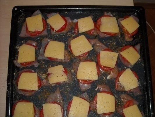Куриное филе под сыром с помидорами