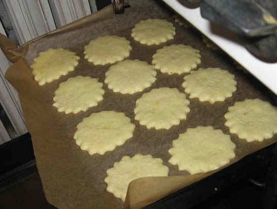Взбить размягчённое масло, сахар, яйцо, добавить 2/3 цедры, ванилин, просеянную муку, соду, соль. Замесить тесто, накрыть полиэтиленом, оставить в холодильнике на час. После тесто раскатать, вырезать печенье, разложить на кондитерскую бумагу или пергамент, положенный на противень. Выпекать при температуре 200 °C минут 15, пока края не станут золотистыми.