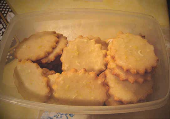 Сделать глазурь, перемешав лимонный сок с сахарной пудрой и оставшейся цедрой. Покрыть глазурью печенье, аккуратно поставить в холодильник, пока глазурь не застынет.