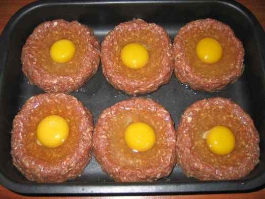 Вторые блюда > Блюда из мяса > Мясные гнезда с яйцом