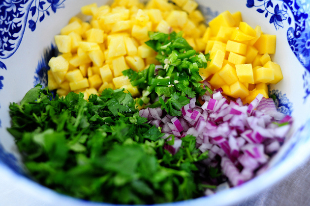 Закуски > Закуски с фруктами > Начос с ананасом и манго