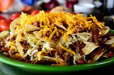 Закуски > Закуски с мясом > Начос с фаршем и овощами