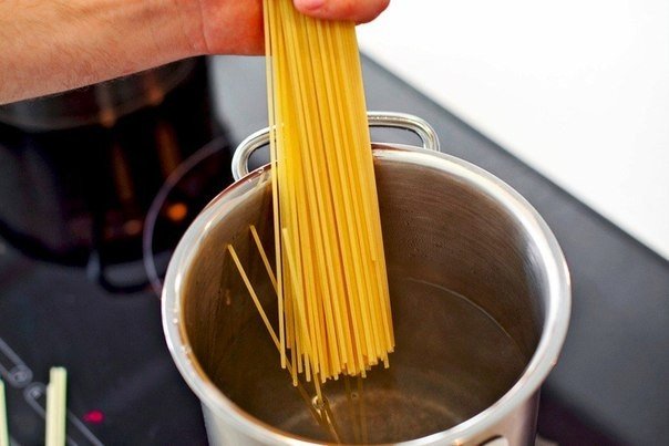 Отвариваем спагетти в течении 10 минут до неполной готовности, они должны быть слегка твердые. Перекладываем в дуршлаг и сбрызгиваем оливковым маслом