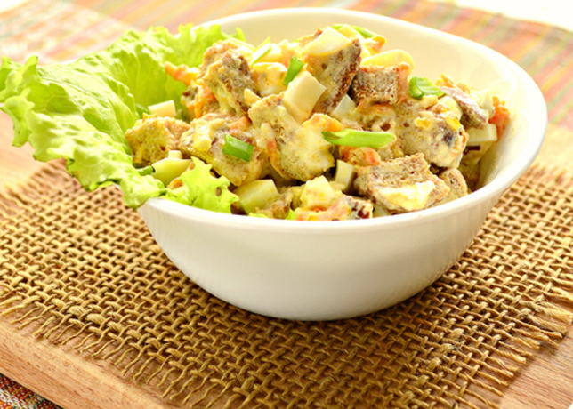 Салаты > Салаты с овощами > Салат с сухариками и яйцами