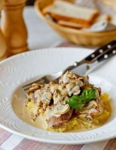 Вторые блюда > Блюда из мяса > Свинина в сливочно-грибном соусе
