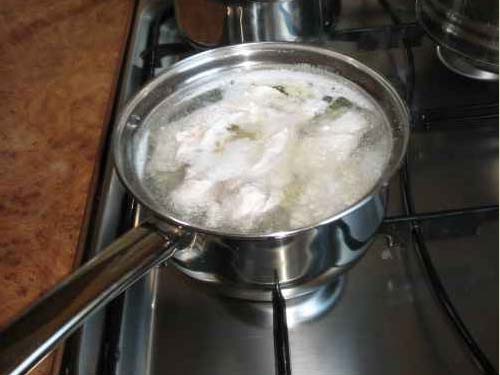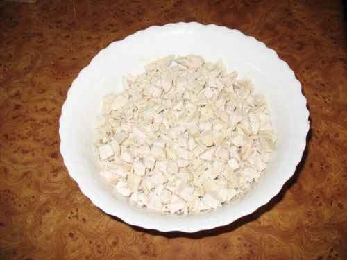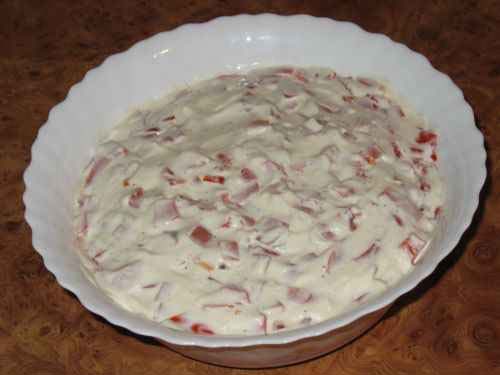 Картошку трем на терке и выкладываем на дно миски. Следующий слой, равномерно распределяем его по всей поверхности