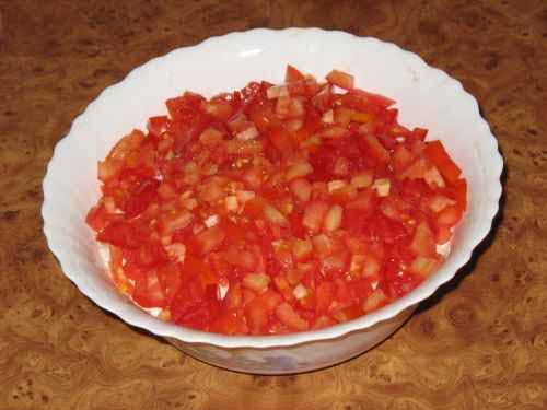 Салаты > Салаты с мясом > Слоеный салат c курицей и помидорами