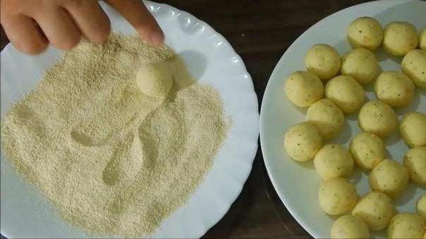 В сковороде сильно разогреваем растительное масло и обжариваем наши сырные шарики до золотистой корочки