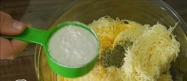 Натираем на тёрке сыр, добавляем к нему яйцо, муку, орегано. Перемешиваем всё пока не получится мягкое тесто