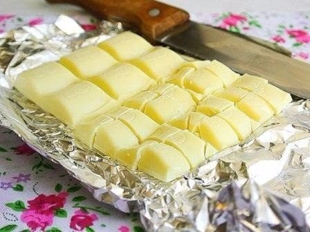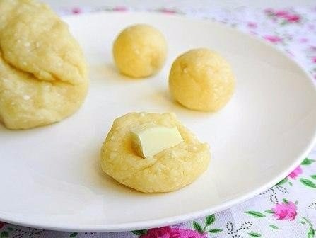 Берём от теста маленький кусочек, кладём в него кусочек шоколада, скатываем шарик, чтобы шоколад оказался внутри