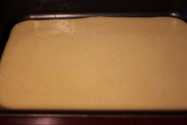 Смешать яйца, соду, муку и сахар. Замесить тесто и в форме отправить его в разогретую до 180 °C духовку на 15 минут. После того как бисквит остынет, то порезать его на небольшие кубики