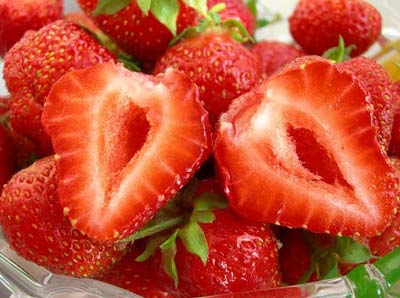 Клубнику режем пополам, очищаем от кожуры авокадо, режем пополам, удаляем из него косточку. Полученный авокадо режем тонкими ломтиками.