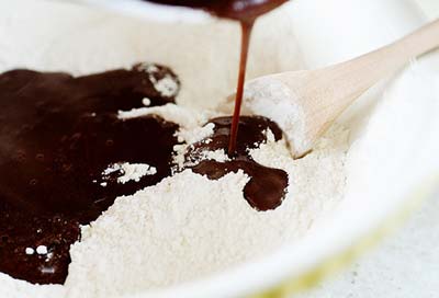 В кастрюле растапливаем сливочное масло масло. Добавить какао и перемешать его до получения однородной массы. Вольём кипящую воду, даем кипеть в течение 20 секунд и убираем в сторону. В миске смешиваем пахту, соду, яйца и ваниль. Добавляем в миску сахар, муку и соль, а также шоколадную смесь. Перемешиваем всё до однородной массы.
